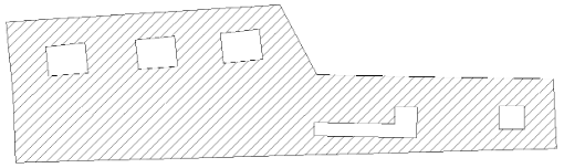 Noul buton permite generarea unui grup de fișiere ESRI SHP pentru o zonă determinată de un poligon cu goluri (enclave). Comanda presupune selecția secvențială a conturului exterior și a contururilor interioare, reprezentate în AutoCAD sau BricsCAD prin polilinii 2D închise. După terminarea selecției, programul va afișa o casetă pentru salvarea grupului de fișiere ESRI SHP aferente zonei dorite (cum este cea hașurată din imaginea următoare), dar și mărimea suprafeței.