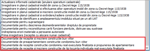 Conform prevederilor Ordinului nr. 423 din 26 iunie 2018 privind modificarea şi completarea Regulamentului de avizare, recepţie şi înscriere în evidenţele de cadastru şi carte funciară, aprobat prin Ordinul directorului general al Agenţiei Naţionale de Cadastru şi Publicitate Imobiliară nr. 700/2014, publicat în Monitorul Oficial nr. 612 din 17 iulie 2018, anexele din componența documentațiilor cadastrale au suferit completări.