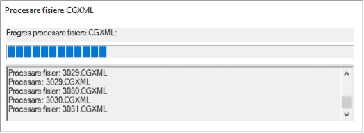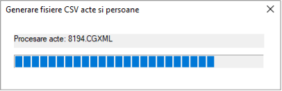 Inițial, comanda va reconstrui toate fișierele CGXML care compun baza de date SQL, iar apoi, va genera fișierele Acte.csv și Persoane.csv, în același loc în care se află fișierul .db selectat. La final, programul va afișa un mesaj informativ de încheiere a procesului de conversie.