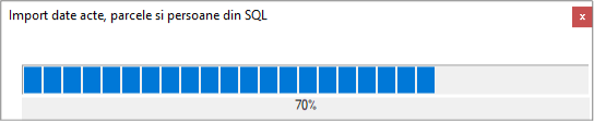 ● Pentru aplicația de cadastru sistematic TOPOGRAPH10 MENTENANȚĂ a fost introdusă comanda nouă [DB2CSV (generează CSV din CGXML)]. Această comandă poate fi apelată din lista derulanta [F25. Genereaza fisiere CGXML] a casetei Cadastru, din bara de instrumente Cadastru General - accesând butonul [SQL->CSV (acte + persoane)] din ribbon sau prin tastarea cuvântului DB2CSV la promptul de comandă și confirmarea cu Enter. Ca și în cazul comenzii CGXML2CSV, comanda permite generarea a două fișiere denumite Acte.csv și Persoane.csv, cu structura necesară pentru importul persoanelor și actelor din cadrul comenzilor [F28. Import/Export date persoane] și [IEACTE (import/export acte proprietate)]. Comanda trebuie utilizată numai pentru baze de date în care au fost incluse fișiere CGXML fără erori, generate cu aplicațiile TopoGraph, CADGen sau GenerareCG. După apelarea comenzii, programul va afișa o casetă de dialog pentru selecția bazei de date SQL (ca fișier .db), iar apoi, o casetă de progresie privind generarea fișierelor Persoane.csv și Acte.csv de forma: