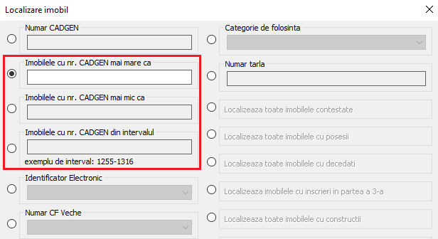 În cadrul comenzii [F24. Localizeaza imobil in plan], a fost introdus criteriul nou de localizare după categoria de folosință, ca în imaginea de mai jos.