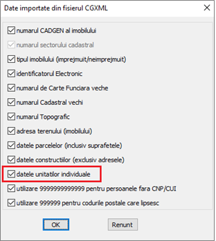 ● În cadrul comenzii [F21. Adăugare/Editare date imobil] cu ocazia importului unui fișier CGXML, pentru persoanele care au domiciliul în afara României, în caseta datelor de adresă a fost eliminată eroarea de nebifare a comutatorului ”Adresa este în afara României”.