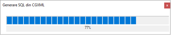 ● Pentru aplicația de cadastru sistematic TOPOGRAPH10 MENTENANȚĂ a fost introdusă comanda nouă [CGXML2DB (generează SQL din CGXML)]. Această comandă poate fi apelată din lista derulanta [F25. Genereaza fisiere CGXML] a casetei Cadastru, din bara de instrumente Cadastru General - accesând butonul [CGXML->SQL] din ribbon sau prin tastarea cuvântului CGXML2DB la promptul de comandă și confirmarea cu Enter. Comanda permite generarea unei baze de date de tip SQLite. După apelarea comenzii, programul va afișa o casetă de dialog pentru alegerea directorului fișierelor CGXML, iar apoi, o casetă de salvare a bazei de date SQL ca fișier cu denumirea implicită cgxml.db (în interiorul directorului fișierelor CGXML). Aplicația va afișa, ulterior, o casetă de progresie privind procesarea tuturor fișierelor CGXML de forma: